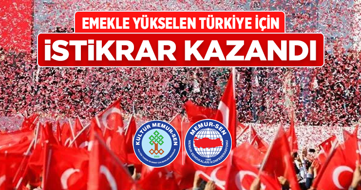 Seçim sonucu, milletimiz, İslam dünyası, mazlum coğrafyalar, insanlık ve özelde tüm kamu görevlileri ve emek kesimi için hayırlı olsun!
