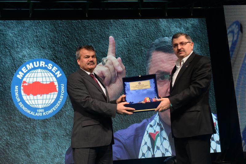 Memur-Sen Genel Başkanı Ahmet Gündoğdu’ya ödülünü Genel Başkanımız Mecit Erdoğan takdim etti.