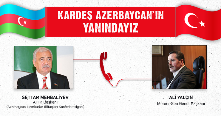 Gönderilen destek mektuplarının yanı sıra Memur-Sen Genel Başkanı Ali Yalçın, Azerbaycan Hemkarlar İttifaqı konfederasyonu Başkanı Settar Mehbaliyev ile telefonda görüşerek Azerbaycan halkının ve emekçilerinin yanında oldukları mesajını verdi.